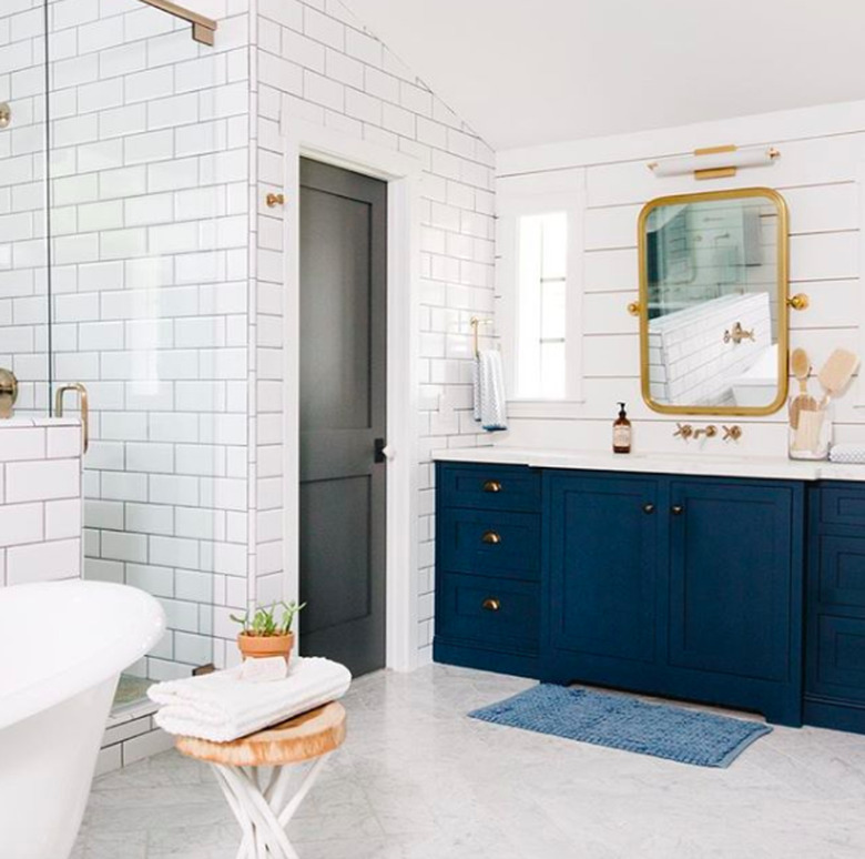 Designed by Kim Lewis, this tiny bathroom packs a stylish punch. And with black and white flooring this chic, you're pretty much guaranteed to leave with a smile from ear to ear. Okay, so maybe that's thanks to the compliment, but either way.