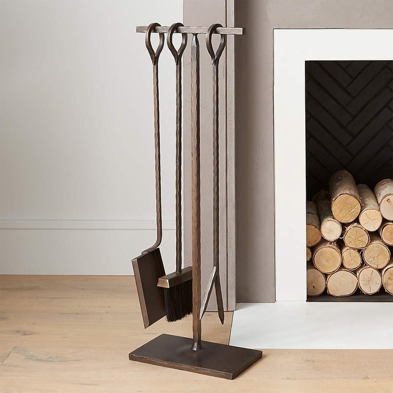 Often crafted from wrought iron, cast iron, steel, or brass, fireplace tool sets typically come with a poker tong (or a poker rod), as well as a shovel, a brush, and a heavy-duty stand to hold them all. And if you're looking for a one-and-done fireplace tool set, there are plenty of choices that include log holders as well. Here are some fab options for consideration.