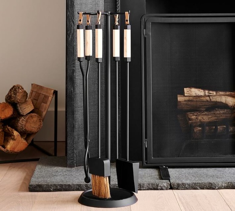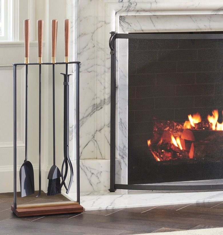 Fireplace tools seem to inherently have a rustic vibe to them, but rest assured that if your space is posh and upscale, it's not hard to fireplace tool set that will fit right in. This set from Williams Sonoma it's an excellent example. Crafted of low-carbon steel with an antique brass finish and beautifully accented with premium Nero Marquina marble, this set is bright, luxe, and uniquely unique.