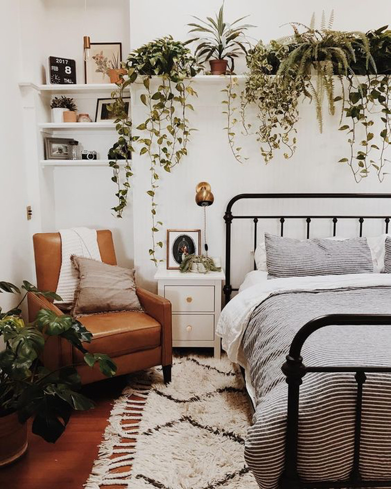 For the past few years boho style has remained a leading decor trend. The vibe is usually conveyed through a variety of bright colors, rich textures, staggered layers, and earthy materials. However, in a small space, this combination can quickly crowd a room both visually and spatially. But even in a tiny bedroom the boho look can still be easily attained without overwhelming.