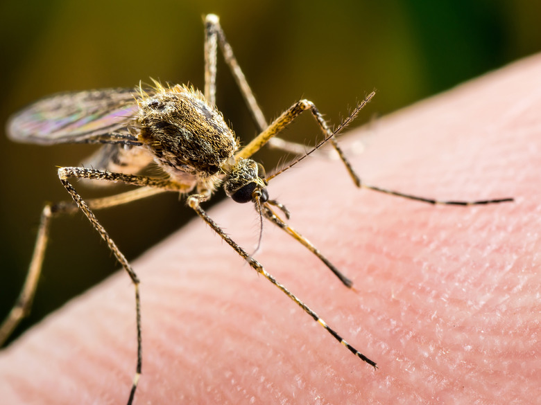 Mosquitoes also use vision to find potential hosts. Dark clothing colors such as navy blue, bright red or black are noticed by mosquitoes more easily than light colors. Wear light clothing to make yourself a little less visible to these blood-sucking pests. Stay as covered as possible, as mosquitoes have a knack for finding bare skin. Loose-fitting clothing is also a great idea, as a mosquito's proboscis may be able to penetrate to your skin through thin, tight-fitting clothing.