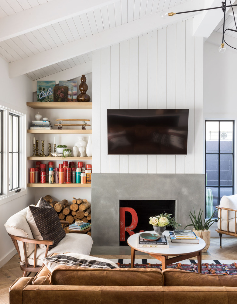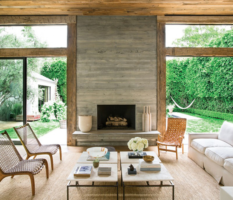 You've probably come across this image perusing Pinterest or any number of magazines over the years, but we just can't quit this one. As far as we are concerned, Jenni Kayne's former Beverly Hills home is a study in warm, rustic modern design and pure perfection. The oversize fireplace is the focal point of the living room and the use of board-formed concrete adds interest and texture. Bonus: The other side functions as an outdoor fireplace.