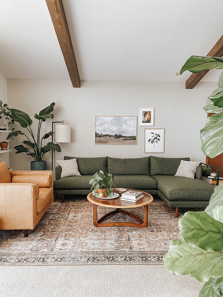 If your home has been blessed with original, midcentury post-and-beam construction, seriously, congrats. Otherwise, you can add beams to your ceiling for a bit more flair, a feature that's seen in this living room belonging to Carrie of Dream Green DIY. The mid-mod-inspired furniture from Article finishes the cozy design.