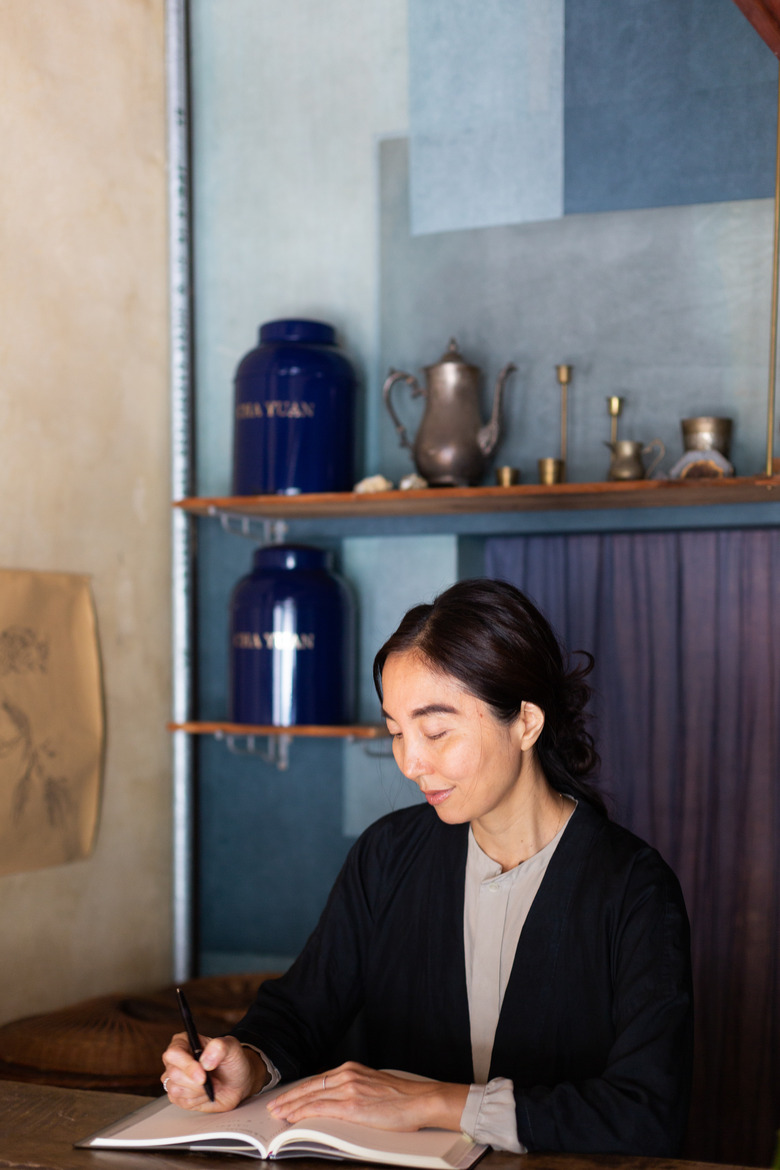 Although most people urged her to tear down the old, dusty walls of the space — a traditional wooden townhouse called a machiya — Shimizu saw something special instead. "This wall looks like the universe," she says, of the aging plaster. Hence, Stardust — the name of her shop and vegan cafe, now nearly three years old. Shimizu left some walls plain, papered others wall in washi (traditional Japanese paper), added a kitchen, and let the history of the space shine through.