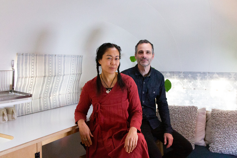 "We actually jumped into this project not long after we met, but we knew right away we wanted to create something together," says Tuan. "We were curious about not only making an efficient tiny living space, we sought the added challenge of keeping it light for future mobility." It's not just an aesthetic venture, but functional — almost elemental. "All our design and build choices were filtered by how are we powering it? Is the material light enough? Will it be road-worthy?"