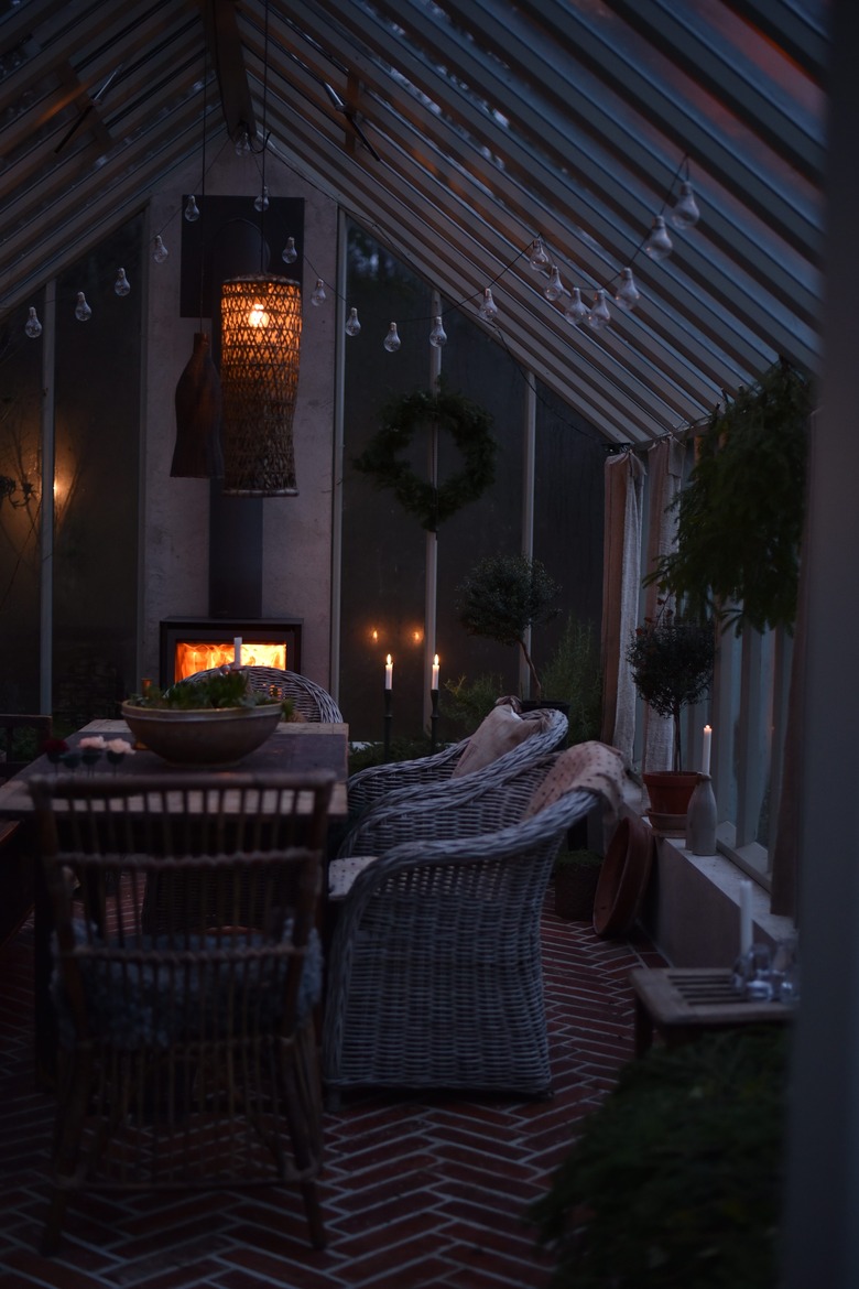 Sweden's cold, dark winter days call for warmth even in the most surprising places. Victoria Skoglund, owner of Zetas Trädgård, transformed her greenhouse into a cozy getaway that can be enjoyed year-round, thanks to a wood stove fireplace that is flanked by raised garden beds.