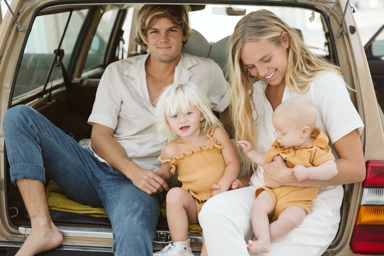 Her perfectly curated aesthetic is no accident. Leah is a stylist, surfer, and owner of Kyst Collective, an online shop specializing in vintage and handmade clothing, much of which is in her signature color palette, as well as home goods. The beach has been central to her entire life. She met her husband, Jakeh, on their high school surf team. "Naturally, we've never strayed far from the beach and love raising our two children the same way we were," she says.