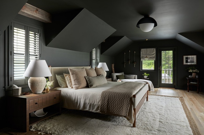 They also added the cement over the brick fireplace. It's Leah's favorite room in the house. "It seems so grand with the vaulted ceilings yet is so peaceful and inviting with the natural wood furniture and beautiful cement fireplace," she says.