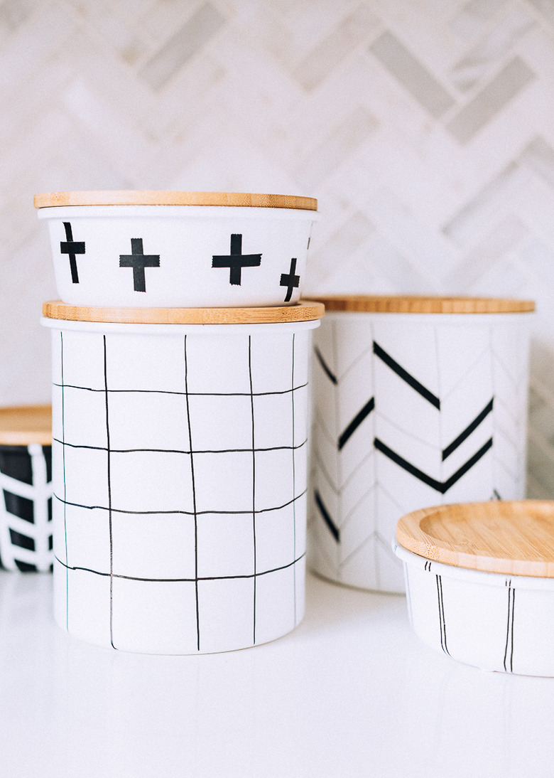 Scandinavian decor is well known for its minimalistic and functional style. The patterns are often simple, linear, and perfectly imperfect. For this DIY, we converted plain glass IKEA jars into stylish containers by adding three different Scandi-inspired designs. Use them as storage, or even planters, in your kitchen, bathroom, or office.