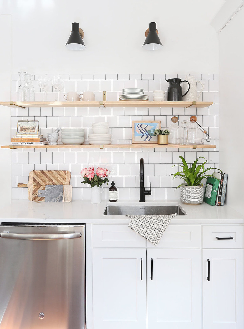 With so many designs and finishes to choose from, cabinet hardware is an ideal way to add a little signature style to your kitchen. It worked for The Everygirl co-founder Danielle Moss in her white kitchen featuring sleek, high-contrast black hardware.