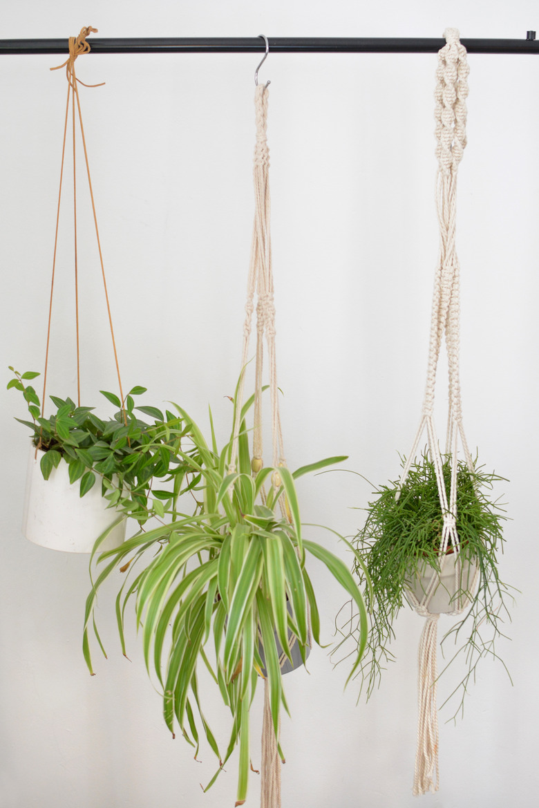 Short on floor space? Look at ways to incorporate plants overhead — hanging planters are perfect for adding interest and dimension to a room. Cascading plants like ivy bring life to empty corners of our homes. We love macramé planters that you can easily slip a trailing plant into.
