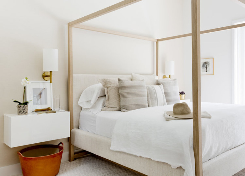 We live in a time when people increasingly prefer unfussy spaces, and a bedroom naturally lends itself to soothing, simple hues. A picture-perfect example is this space designed by Timothy Godbold that encapsulates the trend beautifully, thanks to neutral throw pillows, a light wood four-poster bed, and soft beige walls.