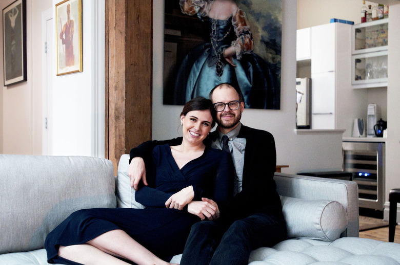 "When we got married, Daniel wanted to get an old-school oil painting of his 'beautiful wife,' but I thought it needed something a little extra, personality-wise," Wright says of the portrait Kibblesmith commissioned. "So we found this lovely artist named Bahar Sabzevari who was showing at the Tribeca Arts Ball, which supports young artists who are in the New York Academy of Art."