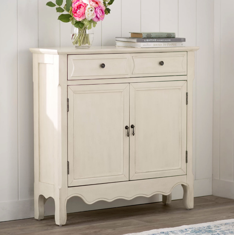 Not only can mirrors add brightness and light to a small room, but also provide secret storage opportunities. Turn your vanity into shelving or let your full-length mirror do the heavy lifting — either way, you'll kill two birds with one stone.
