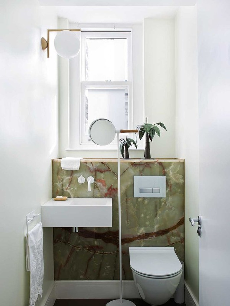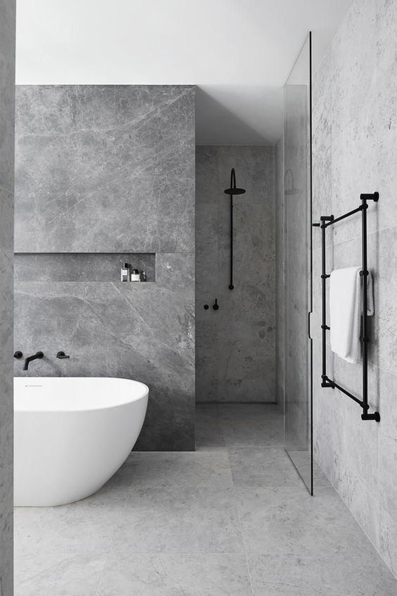 Terrazzo might be an engineered stone as opposed to a natural one, but when the results are this sophisticated, we had to include it in our roundup. Designed by Melbourne design firm Flack Studio, this monochrome bathroom features terrazzo tile that blends in seamlessly.
