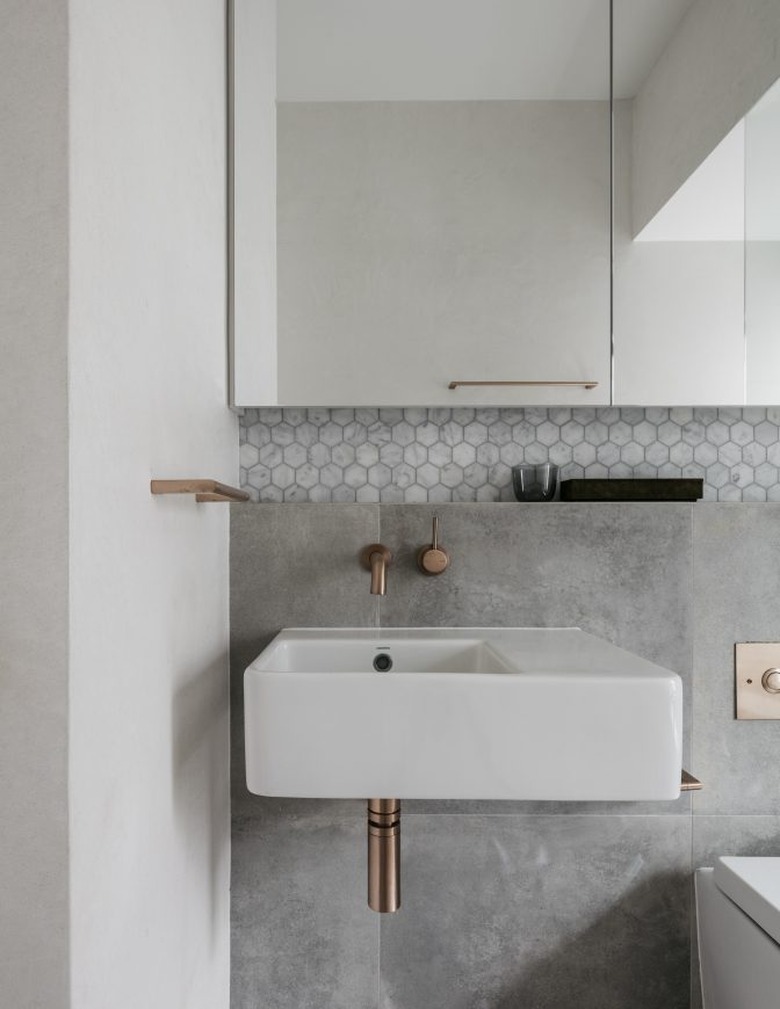 If we haven't convinced you to combine shapes and textures when using stone tile by now, we're not sure that we ever will. Multidisciplinary design practice Alexander & Co. explored a material palette of various natural hues and textures for this semi-detached cottage in Sydney, and the results are minimal yet magical.