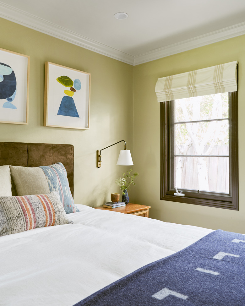 Alternatively, for small primary bedroom decorating ideas, L.A.-based designer Kerry Vasquez of Kerry Vasquez Design suggests going bold with color to make your space feel larger. "Often people think they need to go light and white to make a room feel brighter and therefore bigger," she explains. "But I would argue that making a strong choice with color is bold and works best in a small space. It doesn't need to feel over the top, just intentional so the room feels special and considered."