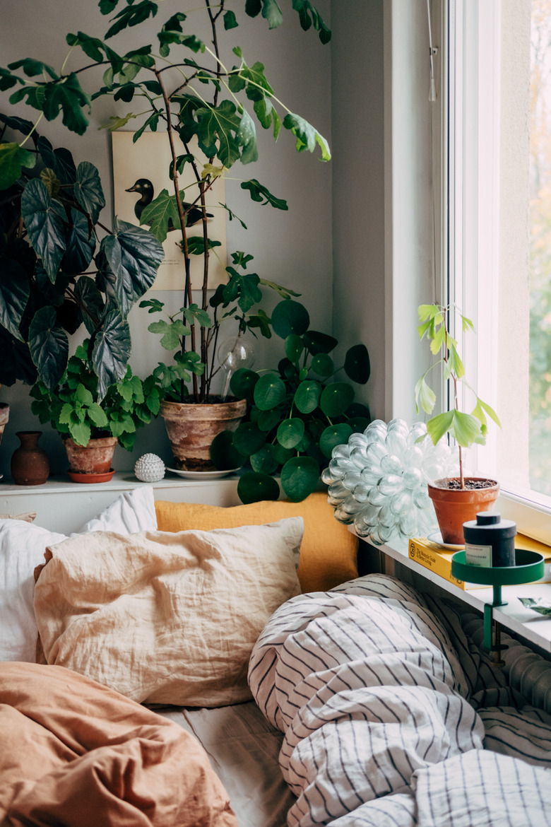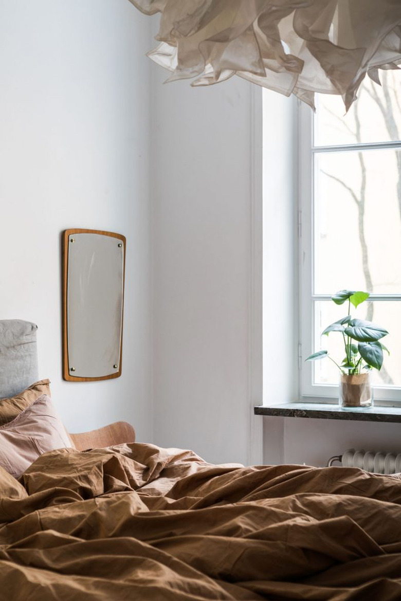 This cozy bedroom idea confirms that there really is something to color theory. Blogger Fanny Ekstrand warmed things up in her Scandi-chic sleeping quarters with the help of pale pink and rust-colored linens. The white walls and light gray headboard balance out the space just enough to keep the orange hue from overwhelming.