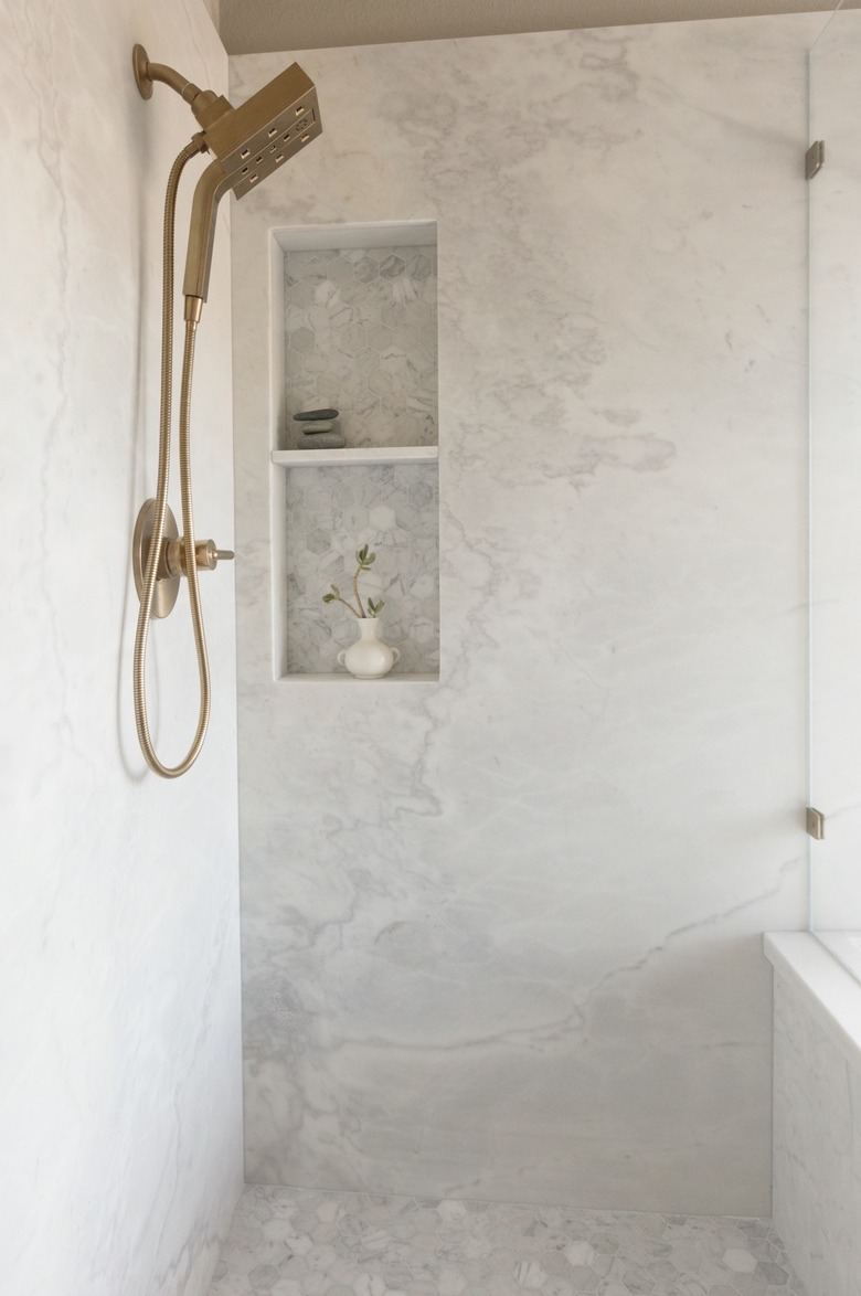 Trend to Try: Marble (or marble-looking porcelain slab) in the shower.