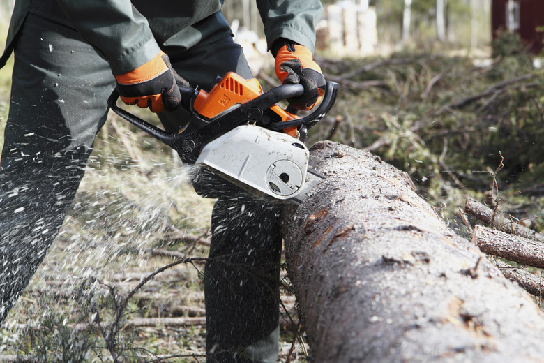 When you need a chainsaw, it's often because you're cutting live wood or wood that hasn't dried out yet. Note whether the wood comes from a part of the tree with an irregular grain that could bind the saw. When cutting large branches, prepare for the moment when the branch breaks at the cut line so you can pull out the saw and prevent it from binding. When working in gardens or on farms, keep an eye out for metal objects, such as fencing, stakes or braces so you don't hit them with the saw.