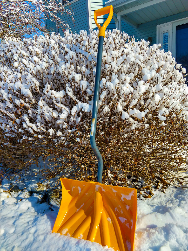 Shoveling the driveway during one snowfall may feel completely different than your next shoveling experience, even if there's a similar amount of snow. The amount of moisture within the snow is what makes all the difference. A cubic foot of water weighs about 62 pounds; snow typically contains anywhere from 5 to 32 percent water, which means one snowfall may weigh a lot more than another. A cubic-foot or huge scoop of fluffy snow may weigh as little as six pounds, while a typical Midwestern snowfall, with approximately 20 percent water content, weighs closer to 13 pounds. Wet, completely saturated snow weighs nearly 20 pounds, which amounts to a lot of backache-inducing work, even on a relatively small driveway. The right shovel for the job can help minimize the effort and strain it takes to clear walkways and driveways.
