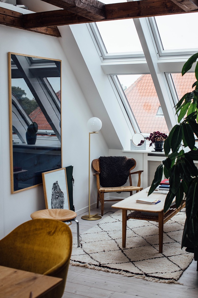 Don't get us wrong midcentury chandeliers are awesome. But if you're looking to switch things up, consider an atomic-style floor lamp instead. We love the geometric quality of this living room lighting idea displayed in Line Borella's Scandi-chic home.