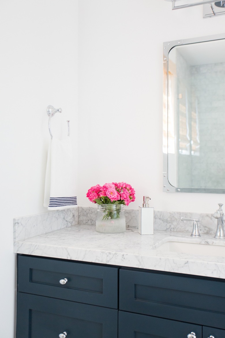 This gorgeous guest bathroom by Shea from Studio McGee gets a pop of color thanks to a vase full of fresh-cut flowers. But life's little luxuries shouldn't be reserved just for visitors. Do yourself a favor and treat yourself to a lovely bathroom bouquet. (In fact, why aren't you buying yourself fresh flowers all the time?)