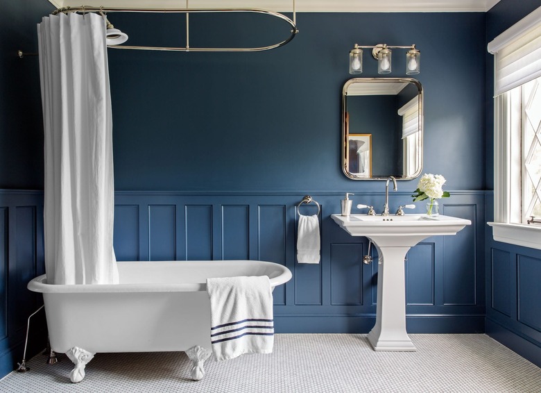 Paint is probably the fastest and easiest apartment bathroom idea. Granted, you will have to go back to all-white walls when you move out, but a fresh coat can instantly give your place a facelift. "Most renters are hesitant to pay for any changes or renovations if they do not own the property, but if you are planning to stay for at least two years, updates are worth the investment," says Homepolish designer Ana Claudia Schultz. Regardless of exactly how long you'll be in your rental, paint is not overly costly and allows you to totally switch up the look of your room. Fun fact: Schultz sometimes wallpapers one wall and paints the others to keep costs low and the style factor high.