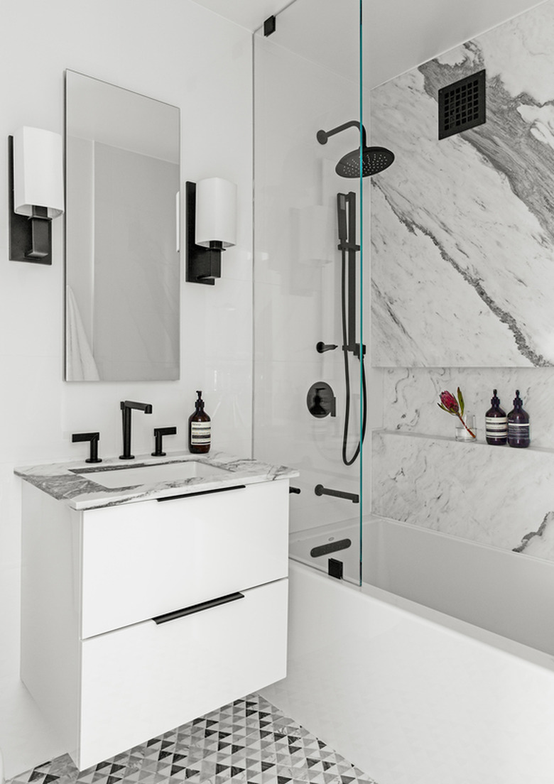 So many of our experts sounded off about updating light fixtures, which is key when it comes to apartment bathroom ideas. "This is the room where you wash your face, get ready for the day, and check how you're looking, so it's important to have that light as flattering and realistic as possible," explains Tamara Kaye Honey, designer and owner of House of Honey. Other than achieving soft, warm light, from an aesthetic standpoint, she says that sconces are a great way to try something a bit trendier without having to spend a lot of money. Pro tip: vintage lighting is always chic.