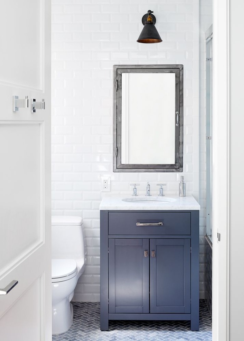Whether you have no medicine cabinet to speak of or simply don't like the one that you do have, selecting a new design can add major wow factor to your space (and double your storage options). "Choose a medicine cabinet in a unique finish like reclaimed wood or zinc to add character to an otherwise simple bathroom," say Caroline Grant and Dolores Suarez, the New York-based design duo behind Dekar Design. They particularly love adding this industrial Restoration Hardware version to spaces they work on ... it's actually a reproduction of a 19th-century pharmacy cabinet.