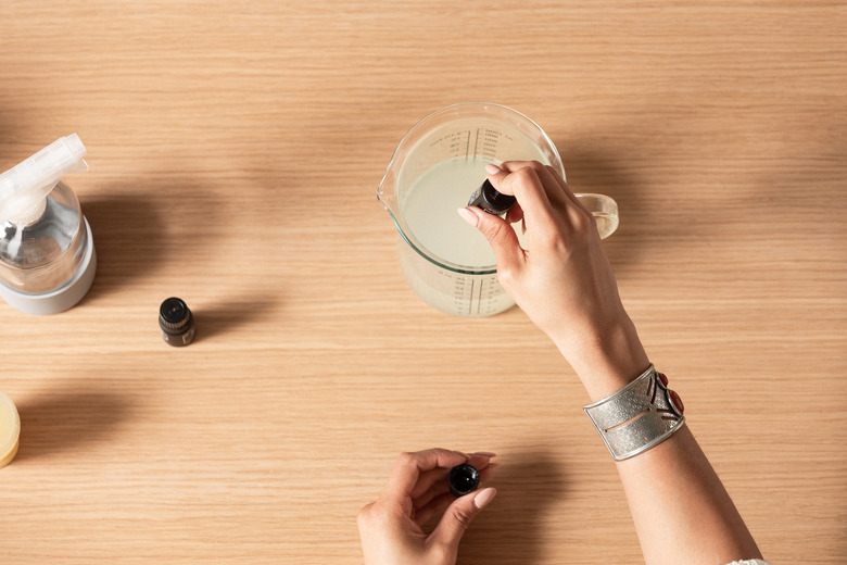 Add about eight to 10 drops of essential oils into the mixture. For this project, Nastazsa loves refreshing scents like spruce and eucalyptus.