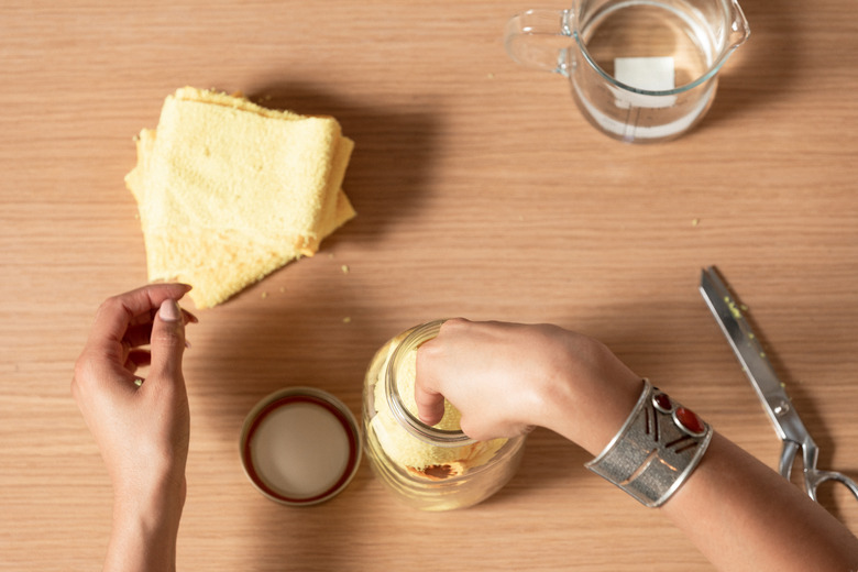 Fold the cut microfiber cloths into the Mason jar.