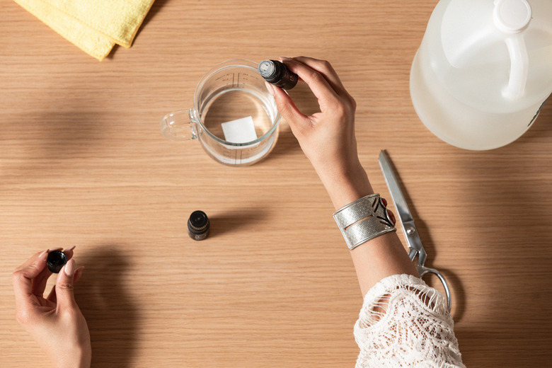 Add 10 drops of essential oil to the vinegar. Psst ... Nastazsa prefers musky scents like cedar wood and sandalwood.