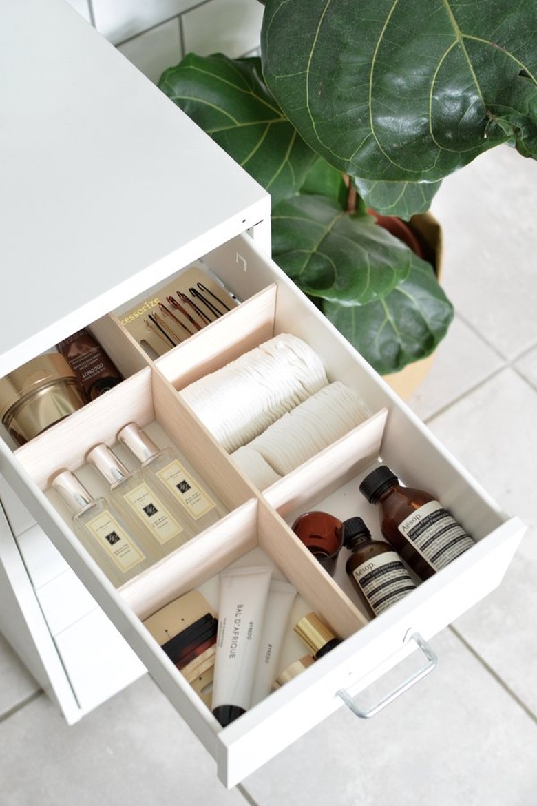If you want to start small on the DIY storage ideas scale (aka no new furniture necessary), just add some drawer dividers to your existing dresser or nightstands. With just a few tools and some pieces of balsa wood, your essentials will be separated in whatever way makes the most sense for you. This Marie Kondo-approved solution means you'll never have to dig around to find what you need again — and you'll be 10 times less likely to end up with "junk" drawers.