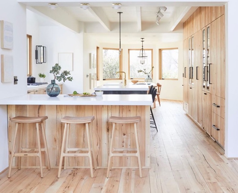 To instantly elevate the look of any space, try a monochrome palette. That's exactly what Emily Henderson does in this Scandinavian-inspired mountain kitchen. Everything from the floors, drawers, pantry, and doors are crafted from lightly treated reclaimed wood to let the natural colors shine through.