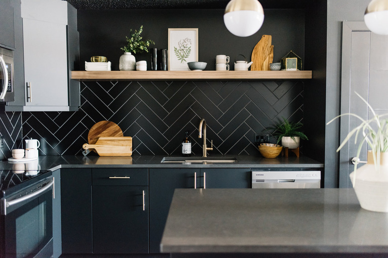 When it comes to fashion, black is always an elegant go-to, right? So why not make like your wardrobe and put the classic hue to work in your kitchen, too? From countertops to cabinets, it's a bold color choice yet not overbearing, and it's eye-catching while still managing to be timeless. Those are all elements that you want in a backsplash idea.