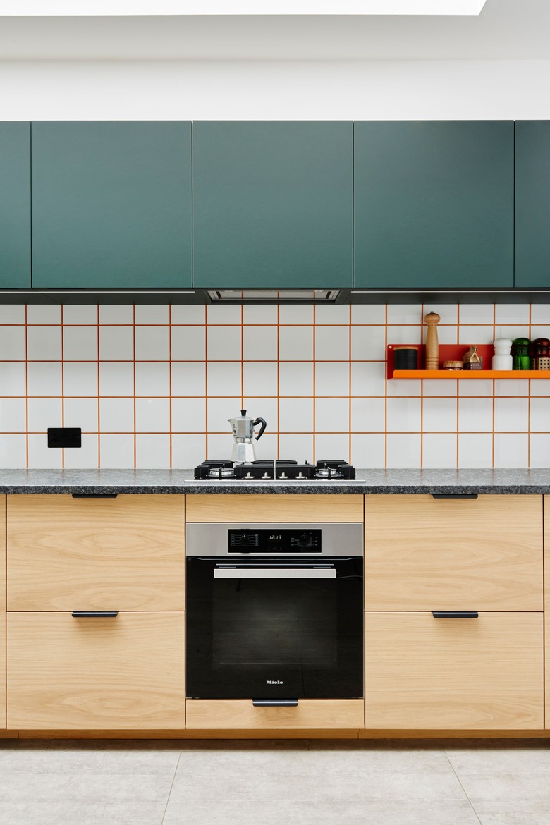 Struggling to stay away from the safety of white tile? Take a baby step and liven things up with colorful grout instead. This contemporary kitchen by London-based kitchen designers HØLTE has taken a basic grid-style backsplash to the next level thanks to a bright pop of orange. Go bold or go home.
