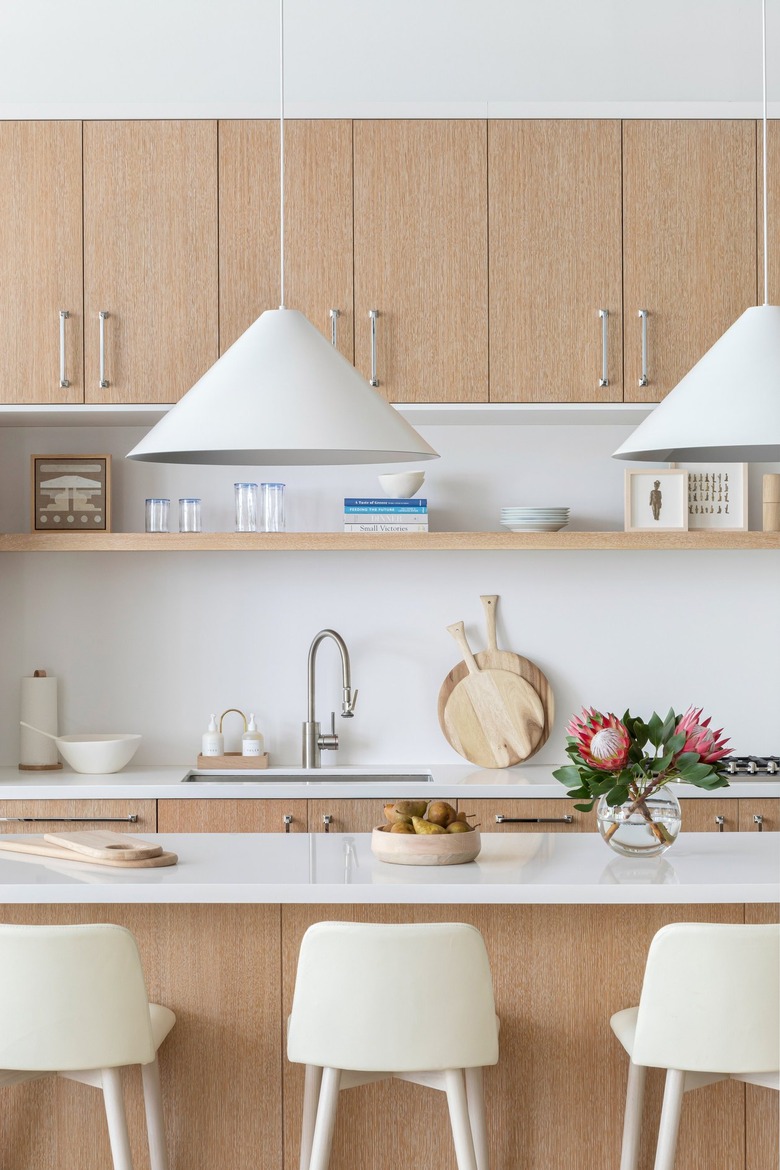 Kitchen cabinets usually do most of the heavy lifting. And you can even tweak the design to make them match your aesthetic. Want a more traditional vibe, for example? Go with a Shaker style. Or look into flat front cupboards if you prefer a contemporary feel. But before you start stashing your essentials, decide if you want both upper and lower cabinets (or perhaps one or the other). Consider a mix of cabinets and open shelves as well. Or, do you want cabinets in your island?