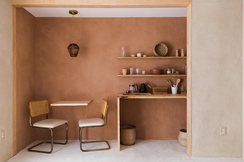 Pottery that coordinates with the interior walls is from Artisan Artifacts.