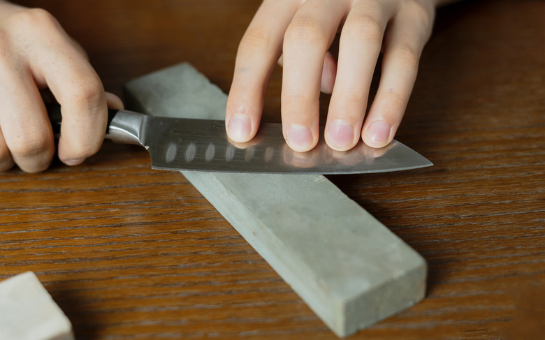 A whetstone offers a means to sharpen knives that are significantly dull, although it takes a little practice to sharpen the knives evenly. Look for a whetstone that has one coarse and one finer side; this way you can perform a general sharpening on any kitchen knife, then smooth it out on the fine side. Choose a whetstone designed to soak in water, such as a diamond grit stone, as these are easier to care for than whetstones used with oils.