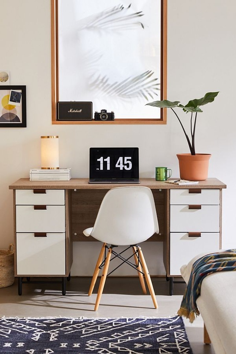 A clean — and chic — workspace is a happy one: "Good organization is key for a seamless workspace, and combining storage and aesthetics is possible," says Rayman Boozer, principal designer of interior design studio Apartment 48.