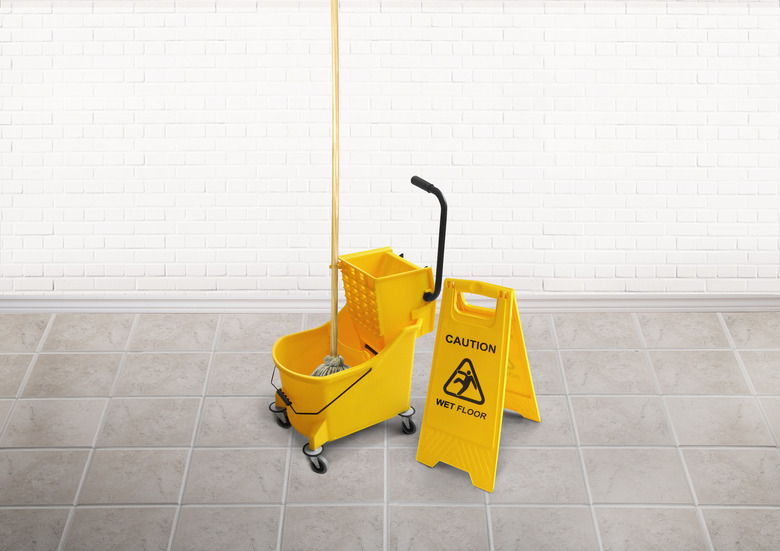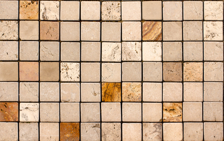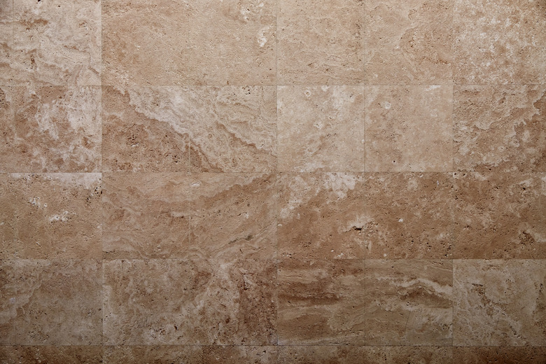 As with most hard floor surface, a daily sweeping helps remove small bits of debris that can scratch travertine flooring. Setting rugs or doormats inside an entry door can help prevent grit and dirt from being tracked in. For cleaning, travertine floors should be mopped at least once a week with water and a pH-neutral cleaner designed specifically for soft stones such as travertine and marble. Regular floor-cleaning products and acidic liquids may cause permanent damage to the stone. Mildew or dark discolorations on the grout or tile can be removed by scrubbing with bleach and water.