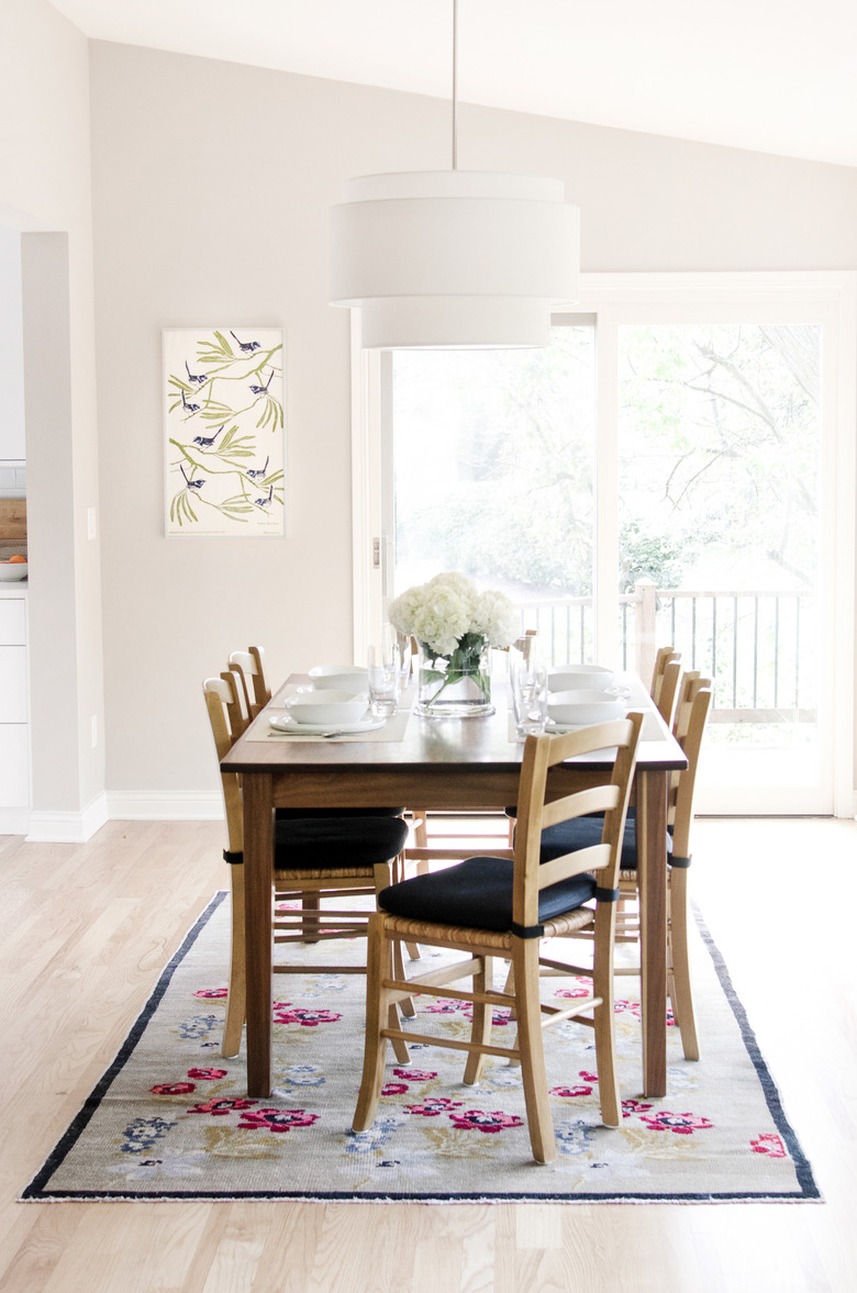 Who knew a dining room could feel so serene? Blogger Jillian Lare's funky blue-and-green bird print — a framed tea towel — perfectly suits this greige space, painted in Sherwin-Williams' Worldly Gray. The large sliding door brightens up the space and brings out the taupe hues of this gentle shade.
