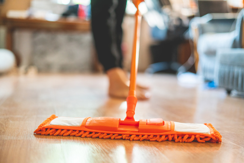 Both linoleum and laminate should be dusted and swept regularly to help prevent scrapes and scratches, especially before washing.