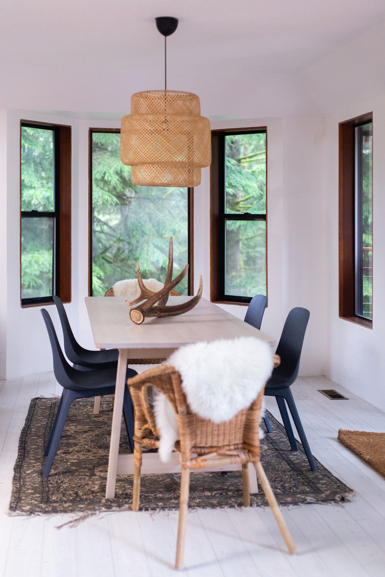 Scandinavian: Natural materials are king in the Scandinavian dining room, so consider a pendant light made with rattan or bamboo (like this IKEA fave), teamed up with white walls, a wood table, and lots of cozy sheepskin rugs thrown over chairs and benches for a warm feeling of hygge.