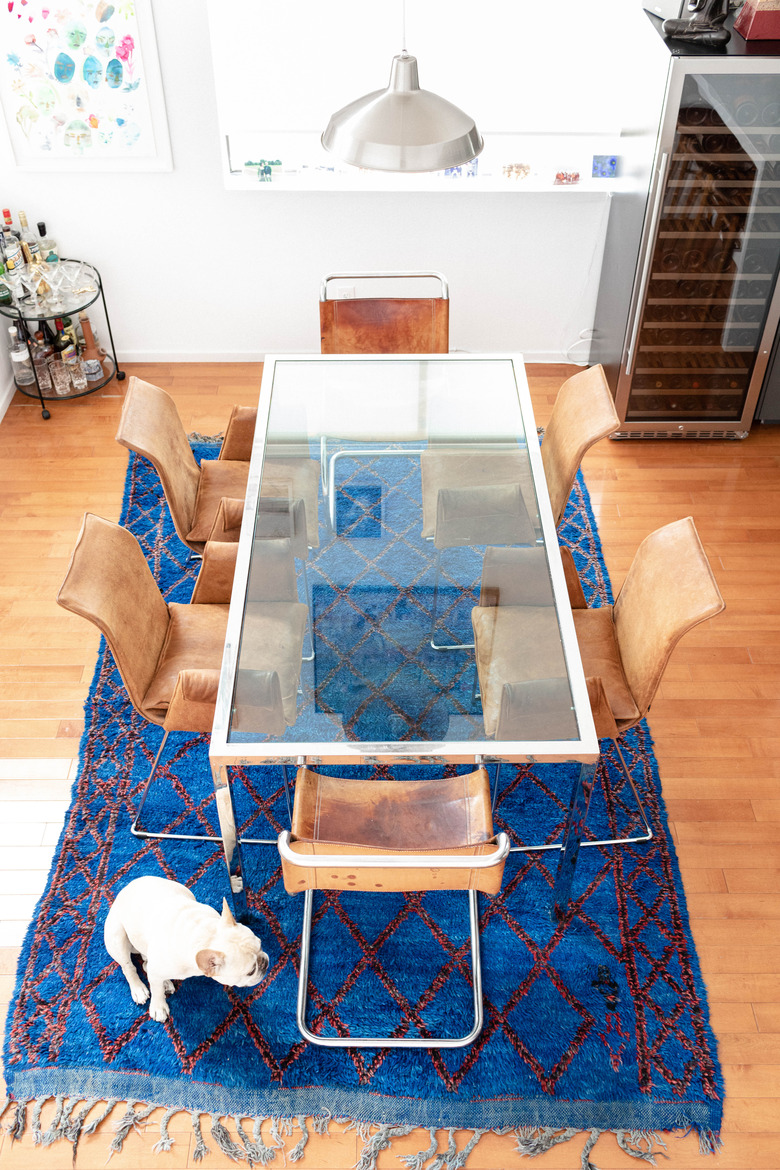 In terms of where to place your table, make sure it goes wherever people can easily get in and out of their chairs; you don't want them crammed up against a wall. You can align the table with a wall or another piece of furniture in order to center it. To make the dining area more distinct, consider adding a rug underneath the table.