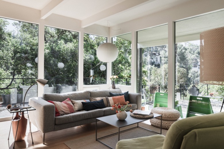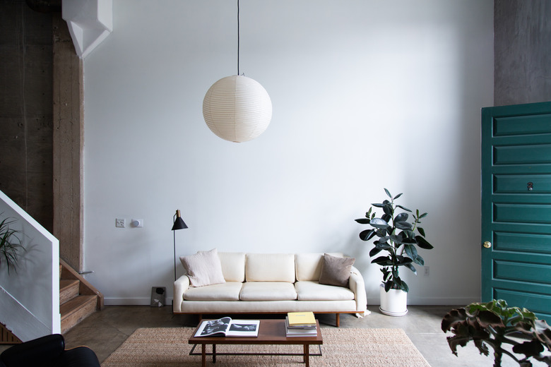 Classic Chinese lanterns inspired this midcentury modern look. Play with scale like in this L.A. loft, where an oversized paper pendant hangs over the living room from a sky-high ceiling.