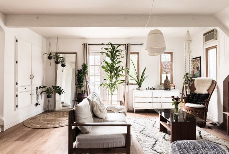 Nothing sets off a room more than a fabulous light fixture. And when it comes to what you want (Modern? Midcentury? Boho?) and what you can get, the choices for living room lighting ideas are endless, which is both awesome and overwhelming. A plethora of pendants awaits, but let's break down what they are and what they can be used for first. Pendants are sometimes called drop or suspender lights (which sounds super stale, so we'll stick to pendant) and are usually suspended from the ceiling by a cord, a chain, or metal rod. You see them a lot in multiples over kitchen counters or in dining rooms, but we're here to show you how they can work beautifully in your living room. They're meant to provide sources of light, but we like to think they can be sources of conversation, style, and design too.