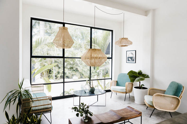 Try grouping an odd number of pendants in the same material to create a focal point. Play with shapes and heights. You'll get some great mood lighting and a cozy place to enjoy some conversation and cocktails. Bamboo or rattan are always good materials to make a stylish splash.