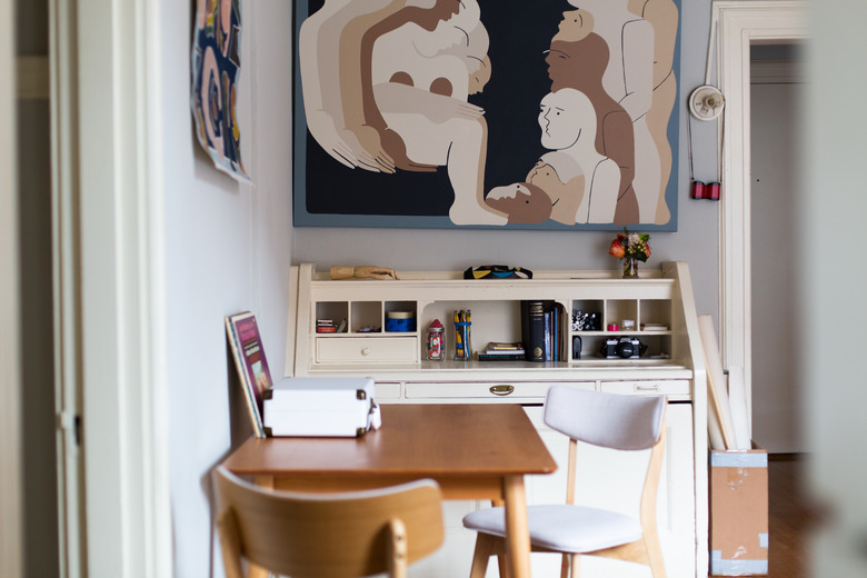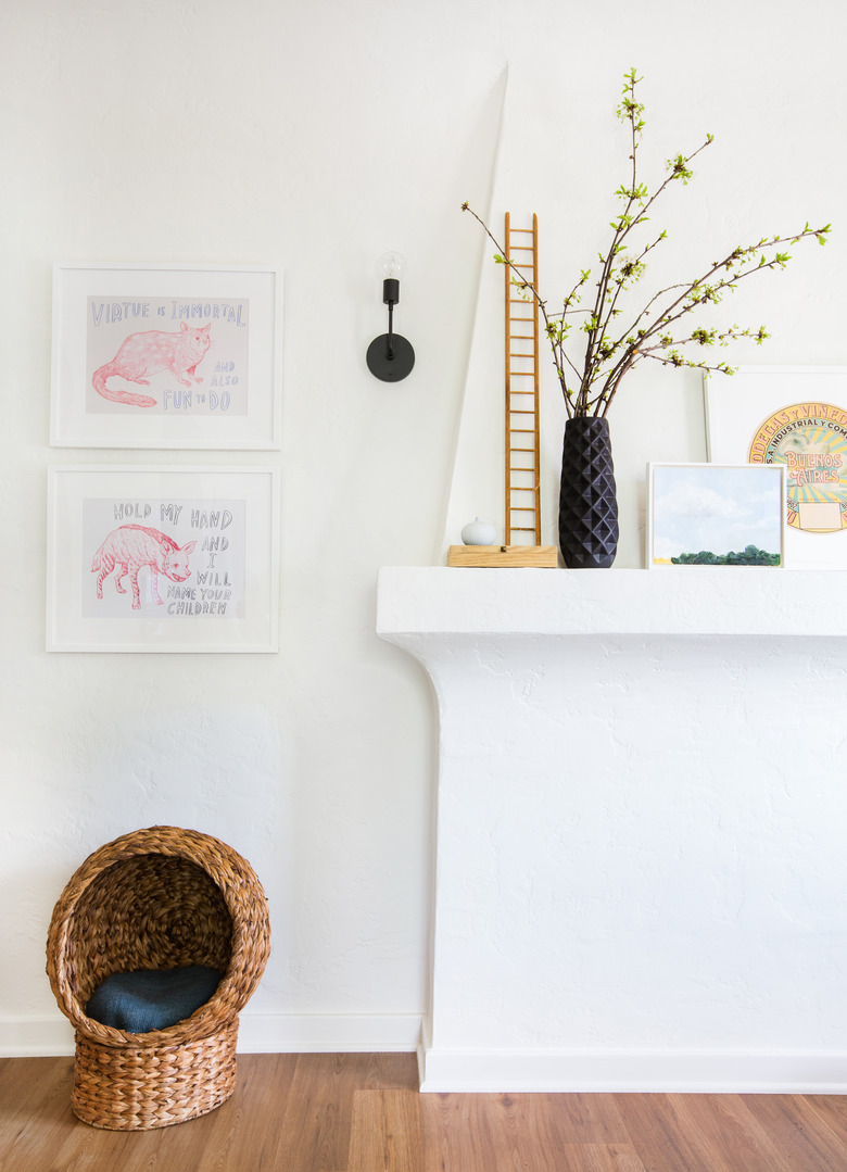 "Our basic best friend: the porcelain socket," Pickart says (seen here in artist Buckley's home studio in Portland). "It's the origin of illumination. And there are iterations of it now that are fantastic." You can get a basic socket at the hardware store for under $5, and then options blossom from there. In particular, Pickart is a fan of the simple flush mount lights you can find at CB2. "With bulb shopping today, you have so many options. That can be your adornment."